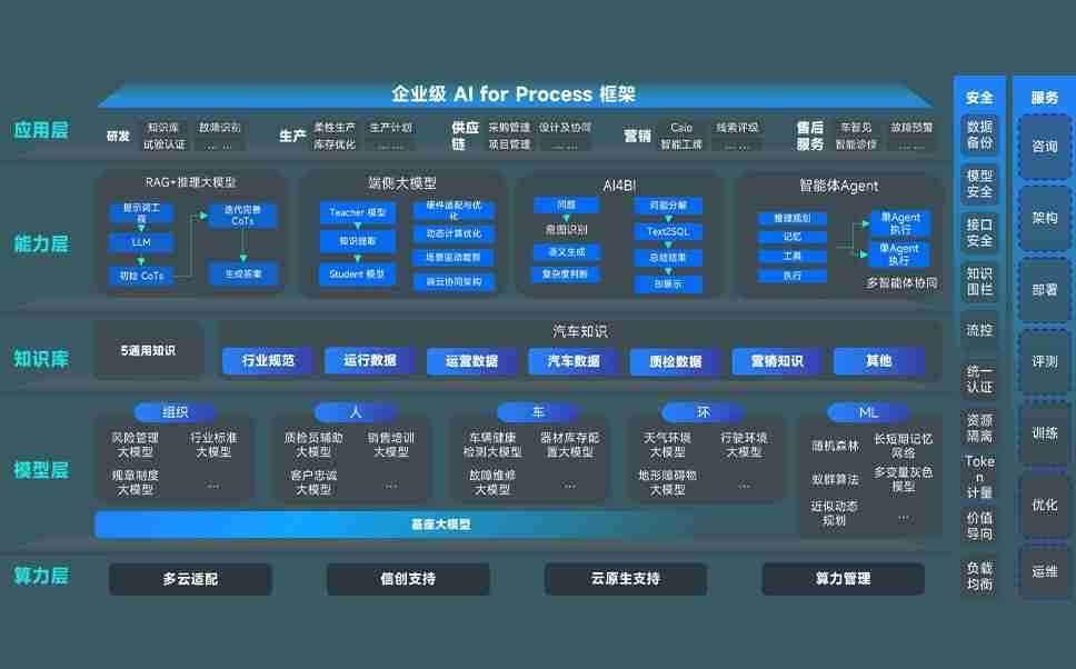 J9娱乐问学智车解决方案是一套基于AI技术的汽车行业智能化系统,,覆盖从底层算力到顶层AI应用的全栈方案。。。方案由算力层、、、模型层和应用层组成:算力层,,,,方案支持多种一体机配置,,,具备云端灵活部署、、多云适配以及动态优化计算资源的能力;模型层,,,J9娱乐问学平台版提供了企业级AI应用一站式构建与管理平台,,,支持基于后训练强化技术的汽车企业专属模型的训练、、、、评测和运营;应用层,,,J9娱乐问学DeepSeek版提供包括超级员工、、、智能招采、、、智能营销、、、智能客服、、、、AI for BI等一系列解决方案,,可助力汽车行业实现数字化转型,,,,让管理更智能、、、响应更敏捷。。